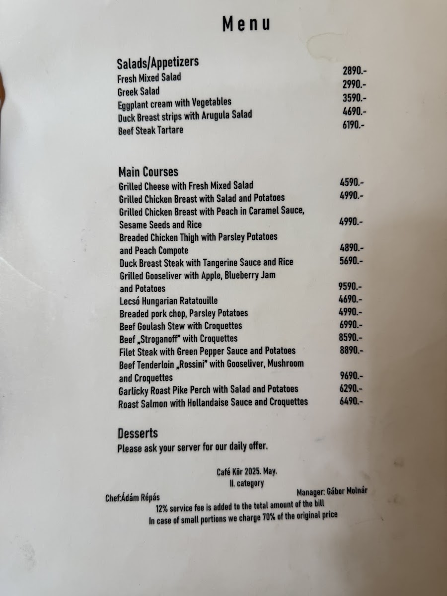 Café Kör offers a thoughtfully curated menu that reflects the essence of classic Hungarian dining with a cozy, approachable café feel. The selection balances comforting traditional dishes with refined touches, making it a fitting spot for lunch, casual dinners, or leisurely weekend meals.